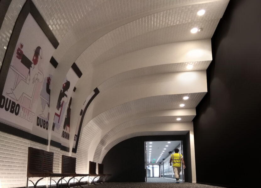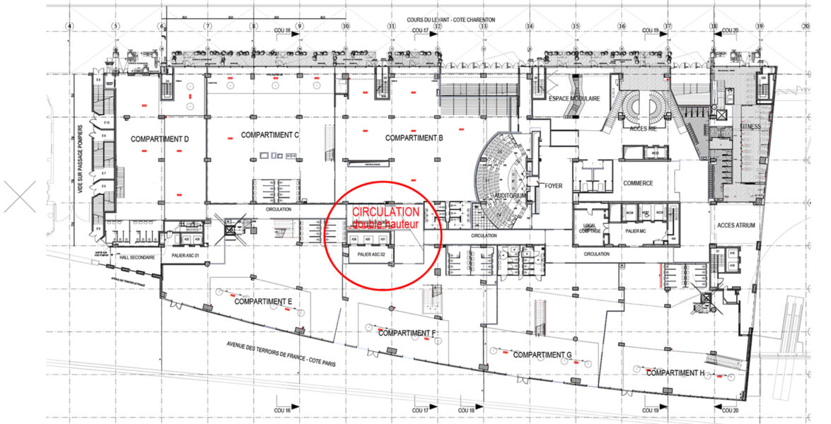 Ce projet consiste à la réhabilitation de plateaux de bureaux au sein de l’immeuble « Lumière » à Bercy ainsi que la requalification de certains espaces partagés publics et privés. Ces compartiments sont distribués par une circulation centrale imposante d’environ 90 mètres. Nous avons souhaité créer un espace de repos et d’échanges au centre d’une déambulation, permettant de profiter d’une double hauteur existante afin de s’affranchir de la monotonie que type d’espace procure habituellement. La thématique du métro, lieu de passages et d’interactions mais également lieu d’histoire et de mémoire, a été choisi tout du long de cette circulation.