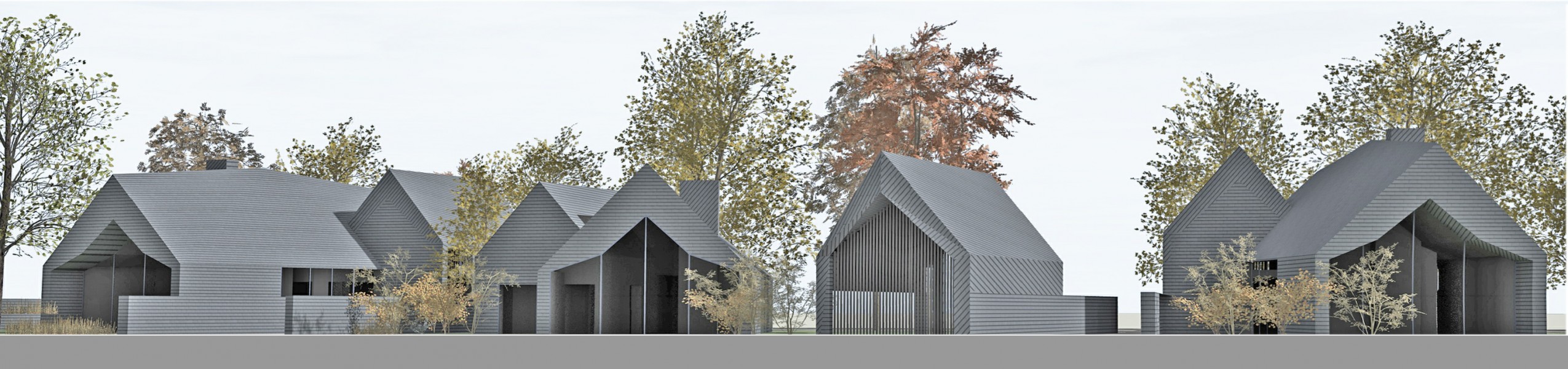 « Nous proposons de partir du contexte, puis de l’icône de la maison, de la multiplicité, de la matérialité, de la composition, de l’imbrication, de la spatialité, de la masse comme réponse, de la qualité des espaces et des cadrages comme objectif. La composition nous invite à produire des jeux de murs, murs-maisons, murs-entrées, murs-services dans un léger chahut de rotations, d’articulations, de plis, de creux, de vides, de lumières et d’ombres bien sûr. La simplicité de la forme de la maison est la base de notre projet. L’attrait réside dans la composition des maisons, un large champ des possibles autour et dans ce paysage en devenir. » Vincent Parreira.